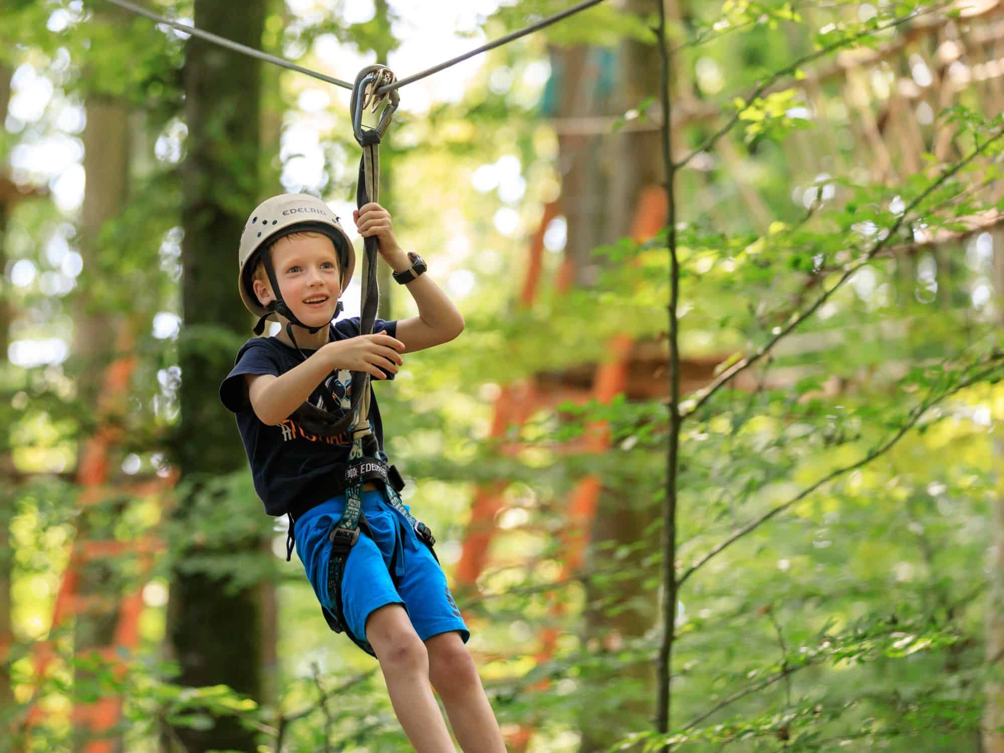 Vom ersten Kletterabenteuer im Kids-Parcours bis zu luftigen Höhen im großen Parcours – jedes Kind findet die passende Herausforderung. Das durchgehende Sicherungssystem garantiert maximale Sicherheit, und Begleitpersonen können die Kinder vom Boden aus unterstützen.